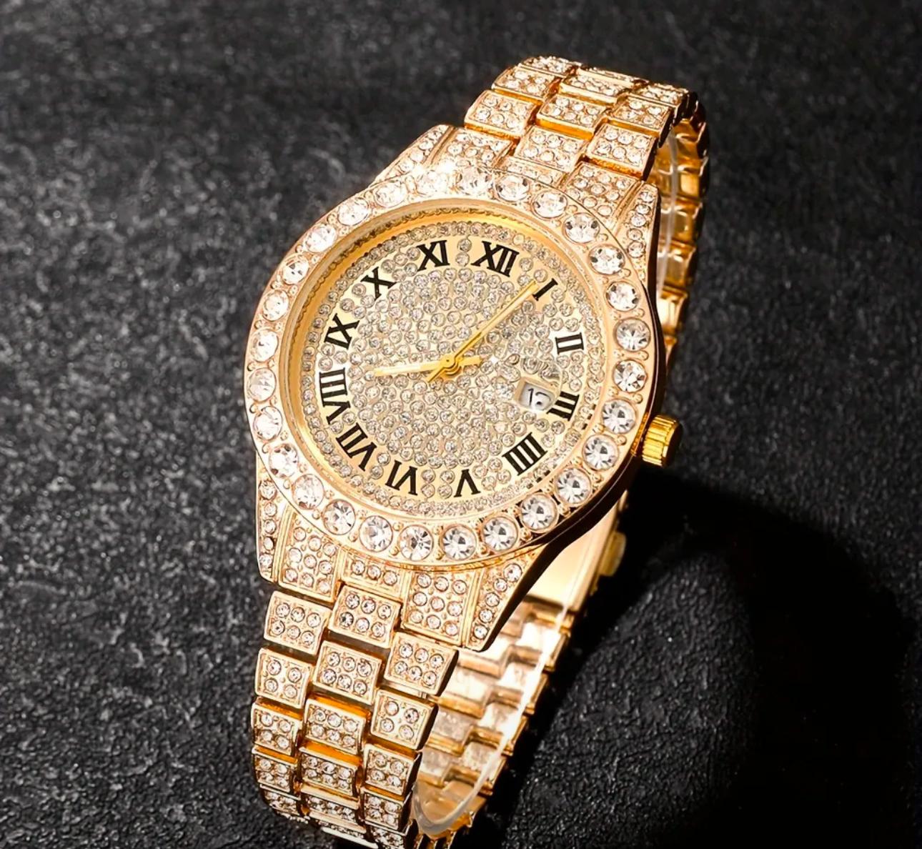 -Diseño Chic y Moderno: El reloj presenta un diseño elegante que se adapta a cualquier ocasión. La esfera y el acabado brillan con un toque de distinción, mientras que la pulsera y el collar de estrás aportan un brillo sutil que realza tu look.